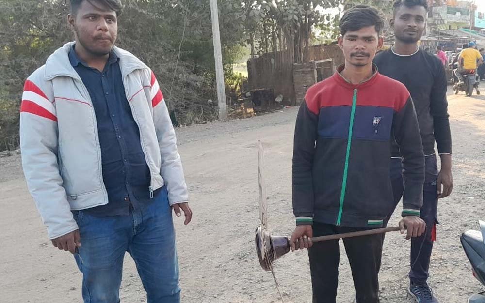 हाथ में छत पंखा लिए जाते दिखे युवा