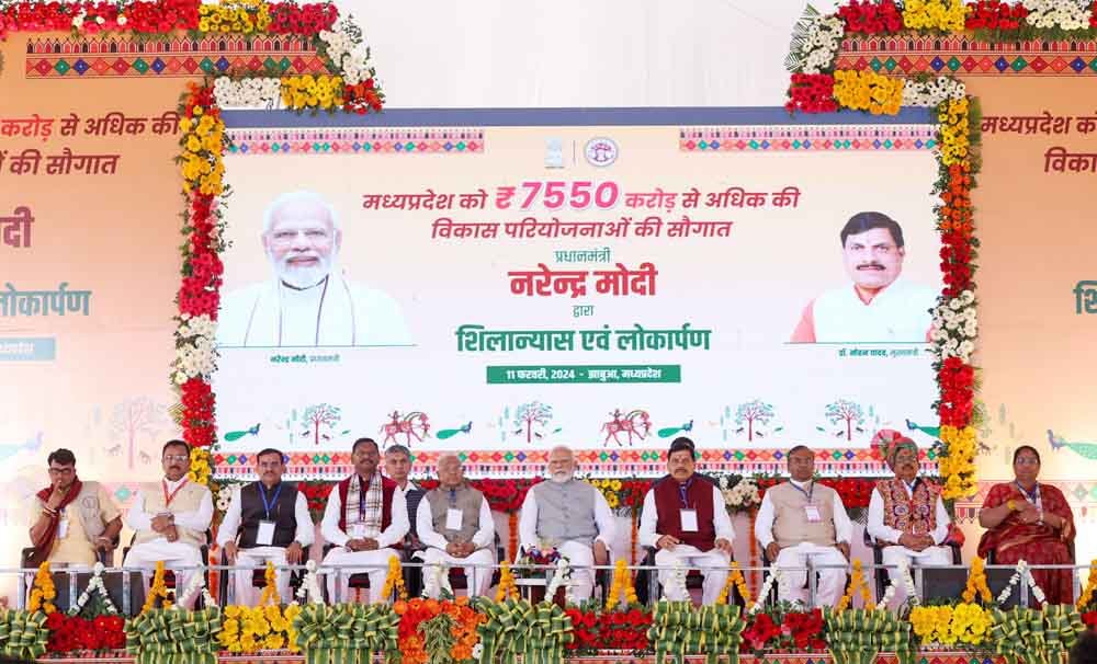 प्रधानमंत्री नरेन्द्र मोदी जनजातीय बहुल क्षेत्र झाबुआ के गोपालपुरा में जनजातीय बंधुओं से रू-ब-रू हुए। उन्होने विकास कार्यों पर केंद्रित प्रदर्शनी का अवलोकन किया। प्रधानमंत्री मोदी जनजातीय बंधुओं के विशाल कुंभ में अभिवादन स्वीकार करते हुए मंच पर पहुंचे।कार्यक्रम में राज्यपाल मंगुभाई पटेल, मुख्यमंत्री डॉ. मोहन यादव, केंद्रीय मंत्री अर्जुन मुंडा व फग्गन सिंह कुलस्ते पूर्व मुख्यमंत्री शिवराज सिंह चौहान, मंत्रिगण, खजुराहो सांसद वी.डी. शर्मा, जनजातीय मोर्चा के राष्ट्रीय अध्यक्ष समीर उराम तथा जनप्रतिनिधि उपस्थित थे।
