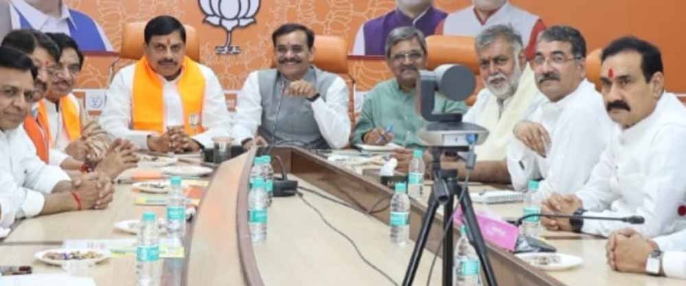 मुख्यमंत्री डॉ. मोहन यादव, भारतीय जनता पार्टी के प्रदेश अध्यक्ष व खजुराहो सांसद श्री विष्णुदत्त शर्मा, प्रदेश सह प्रभारी श्री सतीश उपाध्याय एवं प्रदेश संगठन महामंत्री श्री हितानंद जी की उपस्थिति में सोमवार को भाजपा प्रदेश कार्यालय में प्रदेश चुनाव प्रबंधन समिति की बैठक आयोजित की गई। बैठक में केन्द्रीय ससंदीय बोर्ड के सदस्य डॉ. सत्यनारायण जटिया, उप मुख्यमंत्री श्री जगदीश देवड़ा, श्री राजेन्द्र शुक्ल, प्रदेश शासन के मंत्री श्री कैलाश विजयवर्गीय, श्री राकेश सिंह, श्री प्रहलाद पटेल, पूर्व गृह मंत्री व वरिष्ठ नेता डॉ. नरोत्तम मिश्रा, अनुसूचित जाति मोर्चा के राष्ट्रीय अध्यक्ष श्री लाल सिंह आर्य, प्रदेश महामंत्री व विधायक श्री भगवानदास सबनानी, महिला मोर्चा की प्रदेश अध्यक्ष व सांसद श्रीमती माया नारोलिया, सांसद श्री गजेन्द्र सिंह पटेल एवं पूर्व मंत्री श्री रामपाल सिंह भी उपस्थित रहे।