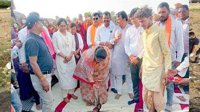 महिला एवं बाल विकास मंत्री श्रीमती निर्मला भूरिया झाबुआ जिले के पेटलावद जनपद की ग्राम पंचायत करड़ावद के ठिकरिया तालाब पर जल गंगा संवर्धन अभियान में जल चौपाल कार्यक्रम में शामिल हुईं। मंत्री श्रीमती भूरिया ने कहा कि पेटलावद क्षेत्र को माही डेम की सौगात स्व. दिलीप सिंह भूरिया के अथक प्रयासों से मिलने के कारण आज पेटलावद में हरियाणा, पंजाब जैसी कृषि होने लगी है। उन्होंने कहा कि क्षेत्र के अनेक पुराने तालाबों से किसान अपनी फसलों की सिंचाई के लिये पानी लेते आ रहे हैं। वर्तमान में तालाब में पानी खत्म हो गया है। ऐसी स्थिति में सभी किसानों को जल गंगा संवर्धन अभियान के अंतर्गत तालाबों से काली मिट्टी जन-भागीदारी से निकालकर अपने-अपने खेतों में ले जायें, जिससे उनके खेतों की उर्वरा शक्ति में वृद्धि होगी। मंत्री श्रीमती भूरिया ने ग्रामीणों से अपील की कि इस महत्वपूर्ण अभियान में आगे आयें एवं जल-स्रोतों की साफ-सफाई और जल संग्रहण के कार्य में भागीदारी निभायें, जिससे वर्तमान जल संकट से आने वाली पीढ़ी को बचाया जा सके। इस अवसर पर 100 बालिकाओं ने कलश यात्रा निकाल कर जल संरक्षण का संदेश दिया गया।