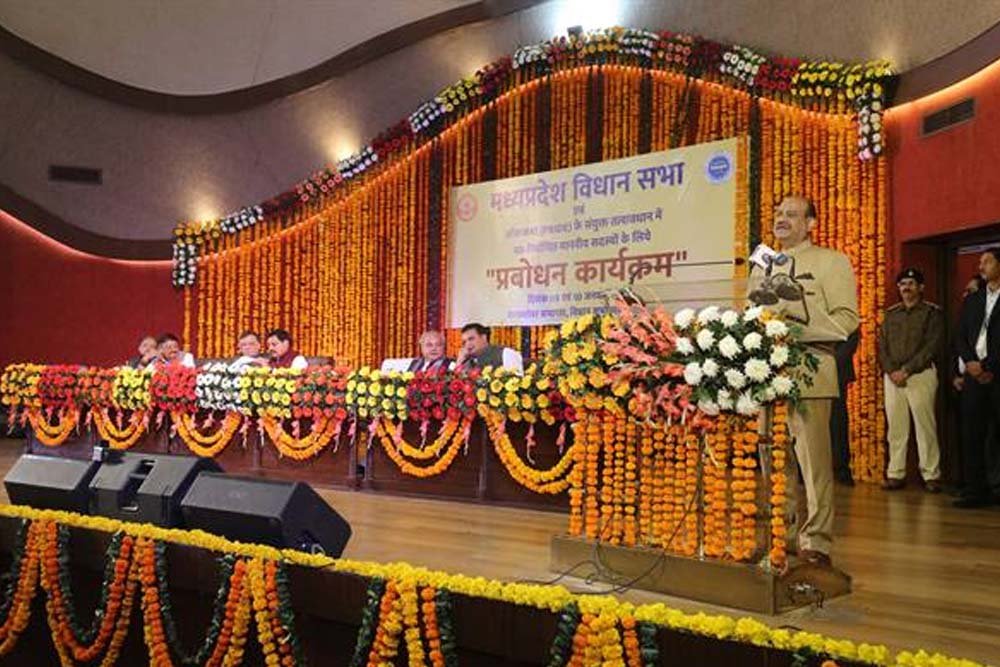 मध्यप्रदेश विधानसभा सचिवालय द्वारा लोकसभा सचिवालय के संसदीय लोकतंत्र शोध एवं प्रशिक्षण संस्थान (प्राईड) के सहयोग से आयोजित दो दिवसीय प्रबोधन कार्यक्रम में विधायकगण, संसदीय शिष्टाचार और आचरण, बजटीय प्रक्रियाएं और संसद/विधानमंडलों में वित्तीय कार्य, संसदीय विशेषाधिकार, प्रश्नकाल, अल्पकालीन चर्चा, स्थगन, ध्यानाकर्षण, अविलंबनीय लोक महत्व के मामलों की सूचनाओं का महत्व और उपयोग तथा संसदीय प्रणाली में समितियों की भूमिका और कार्यप्रणाली के संबंध में जानकारी प्राप्त करेंगे।