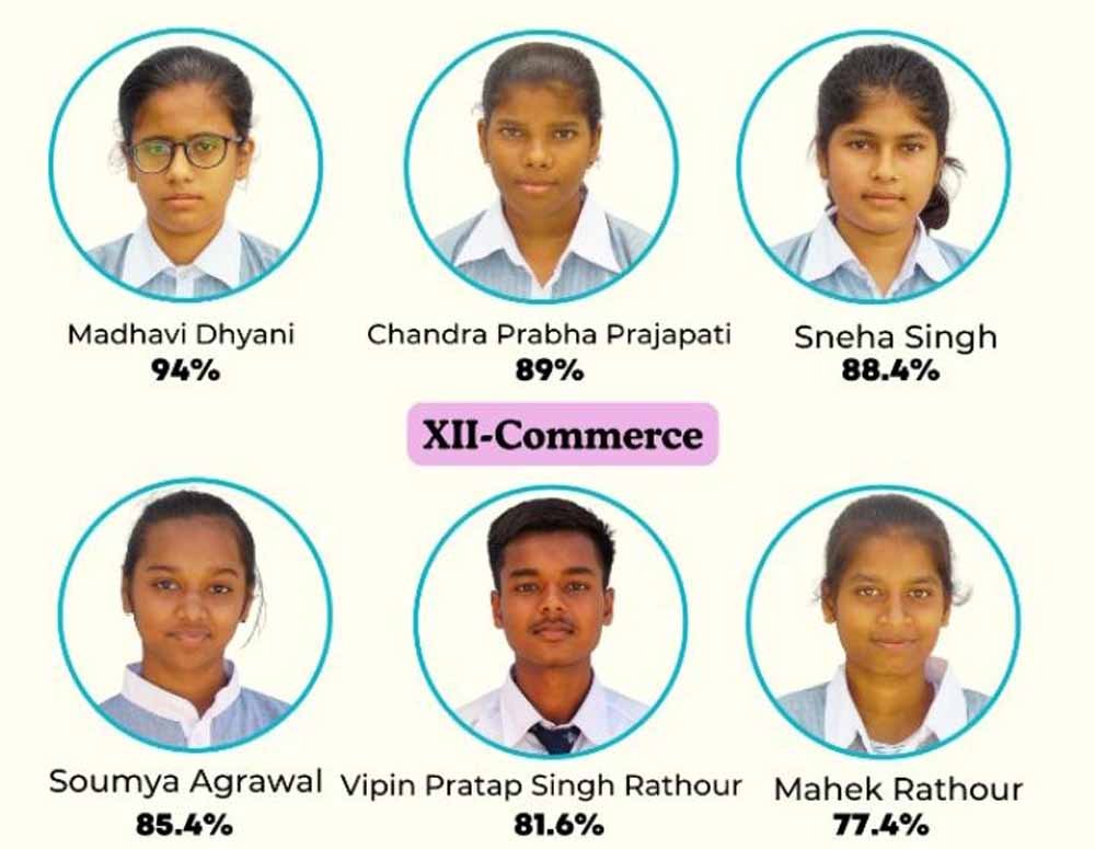 जहां विज्ञान संकाय में, माधवी ध्यानी ने 94 प्रतिशत उत्कृष्ट अंकों के साथ अग्रणी स्थान हासिल किया, चंद्रप्रभा प्रजापति 89 प्रतिशत अंको के साथ दूसरे स्थान पर रहीं, वहीं स्नेहा सिंह ने 88.40 प्रतिशत अंकों के साथ तीसरे स्थान पर रहकर विद्यालय को गौरान्वित किया है। इसी प्रकार वाणिज्य संकाय में, सौम्या अग्रवाल ने 85.40 प्रतिशत के प्रभावशाली अंको के साथ अग्रणी स्थान हासिल किया, विपिन प्रताप सिंह राठौर 81.60 प्रतिशत अंकों के साथ दूसरे स्थान पर रहे। वहीं महक राठौर ने उल्लेखनीय प्रदर्शन करते हुए 77.40 प्रतिशत अंकों के साथ तीसरे स्थान पर रहकर विद्यालय का नाम रोशन किया है।
