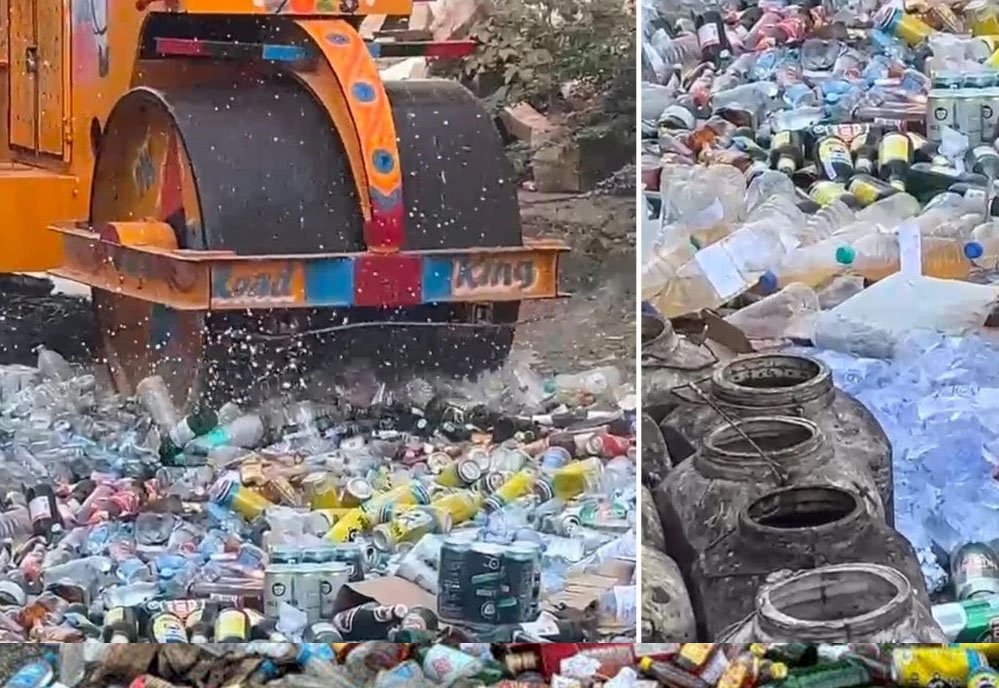 नर्मदापुरम में आबकारी विभाग द्वारा जब्त 59.84 लाख रुपए की हाथभट्टी कच्ची शराब और देशी विदेशी शराब पर बुलडोजर चलाकर उसे नष्ट किया गया। सिटी मजिस्ट्रेट बृजेन्द्र रावत अध्यक्षता में गठित समिति के समक्ष कचरा पटटी, खोजनपुर रोड ईदगाह में नष्टीकरण की करवाई हुई।