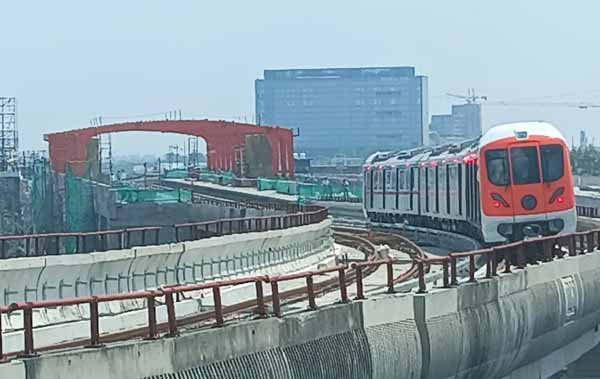 गुजरात के सांवली, वडोदरा से लाए गए 3 मेट्रो कोचों की ट्रैक पर टेस्टिंग हो रही है।