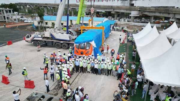 इन को के्रन की मदद से ट्राले से नीचे उतारा गया। इससे पहले मेट्रो रेल कारपोरेशन के डायरेक्टर शोभित टंडन ने पूजा पाठ की और नारियल फोड़ कर पूजन किया। अब इन कोचों की तकरीनकी तरीके से जांच की जाएगी और उसके बाद ही सेफ्टी ट्रायल किया जाएगा।