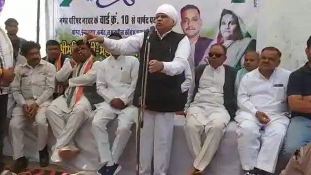 मध्य प्रदेश के शिवपुरी जिले के नरवर नगर परिषद में चुनावी पारा चढ़ा हुआ है। नेतागण प्रचार प्रसार के लिए नरवर पहुंच रहे हैं। बीते रोज कांग्रेस नेता फूलसिंह बरैया नरवर प्रचार-प्रसार के लिए नरवर पहुंचे। जहां फूलसिंह बरैया ने दावा किया है कि अगले विधानसभा चुनाव में भारतीय जनता पार्टी को 50 सीटें भी नहीं मिलेंगी। इतना ही नहीं, बरैया ने कहा कि अगर भाजपा को आगामी विधानसभा चुनाव में 50 से ज्यादा सीटें मिल जाए तो वह खुद अपने हाथ से भोपाल के राजभवन के सामने अपना मुंह काला कर लेंगे। फूल सिंह बरैया ने कहा कि यह बात उनके द्वारा लिखित तौर पर भी भाजपा के वरिष्ठ नेताओं को दी गई है। कांग्रेस नेता फूल सिंह बरैया ने यह बात शिवपुरी में नरवर में होने वाले नगर परिषद के चुनावों के प्रचार प्रसार के दौरान कही।