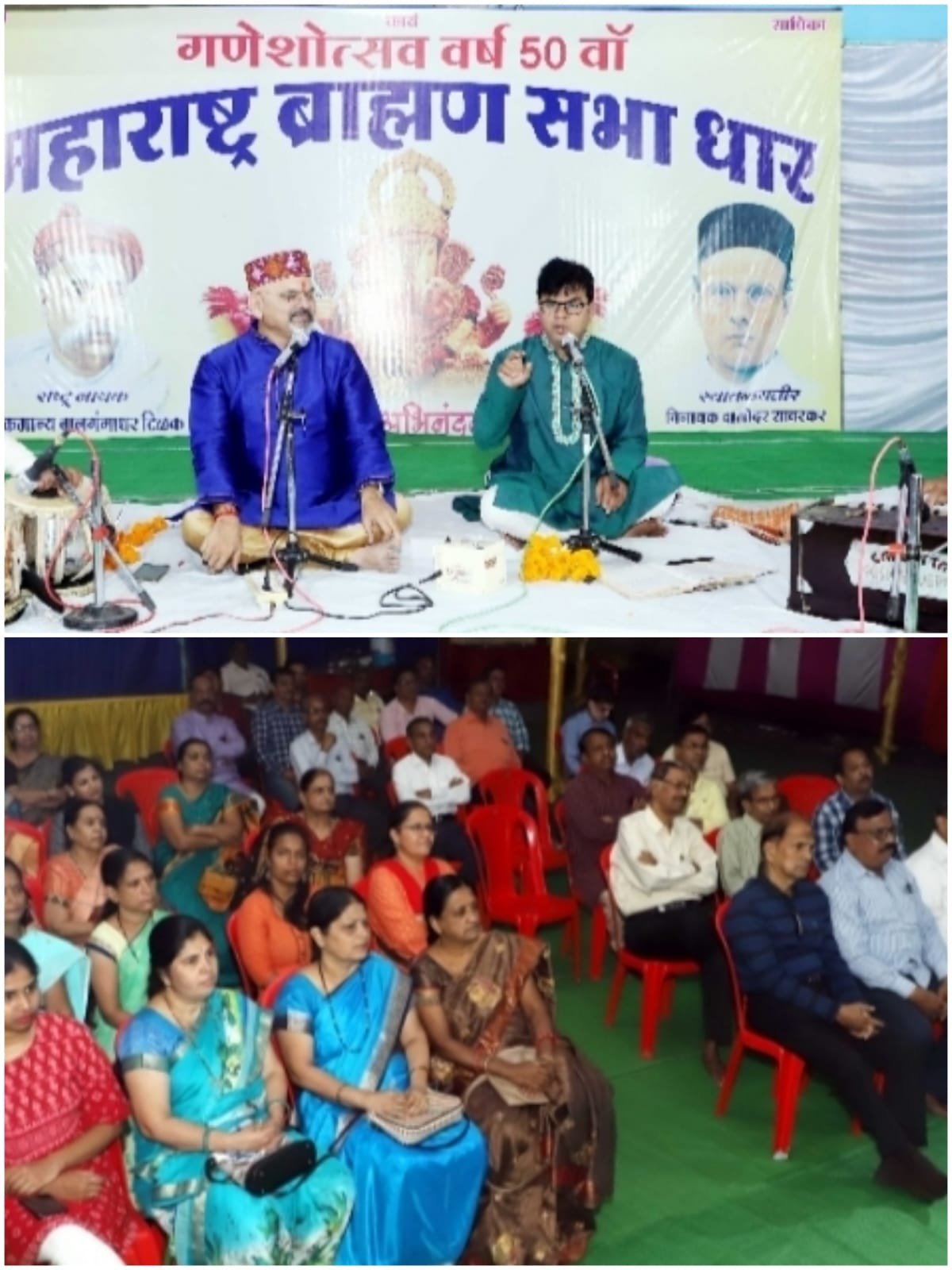 महाराष्ट्र ब्राम्हण समाज मे गणेश उत्सव के दौरान सांस्कृतिक कार्यक्रमों के अंतर्गत महाराष्ट्र नागपुर के सुप्रसिद्ध शास्त्रीय गायक जयंत मंगरुळकर ने अपनी गायकी की प्रस्तुति देकर खूब दाद बटोरी,कार्यक्रम में महाराष्ट्र के विदर्भ क्षेत्र में अपनी वाणी से कार्यक्रमों को एक सूत्र में पिरोने वाले सह कलाकार किशोर गलांदे,मप्र गुजरात सहित अन्य राज्यो में तबले पर अपनी कला का जादू बिखरने वाले सुप्रसिद्ध भजन गायक एवं तबला वादक शिवम मालवीय संगीत के वरिष्ठ शिक्षक व हारमोनियम वादक दीपक खलतकर का समाज के अध्यक्ष अरुण उज्जैनकर,कार्यकारिणी मण्डल के वरिष्ठ सद्स्य उदय वड़नेरकर,कमलेश देव ने पुष्प मालाओं से स्वागत किया।
