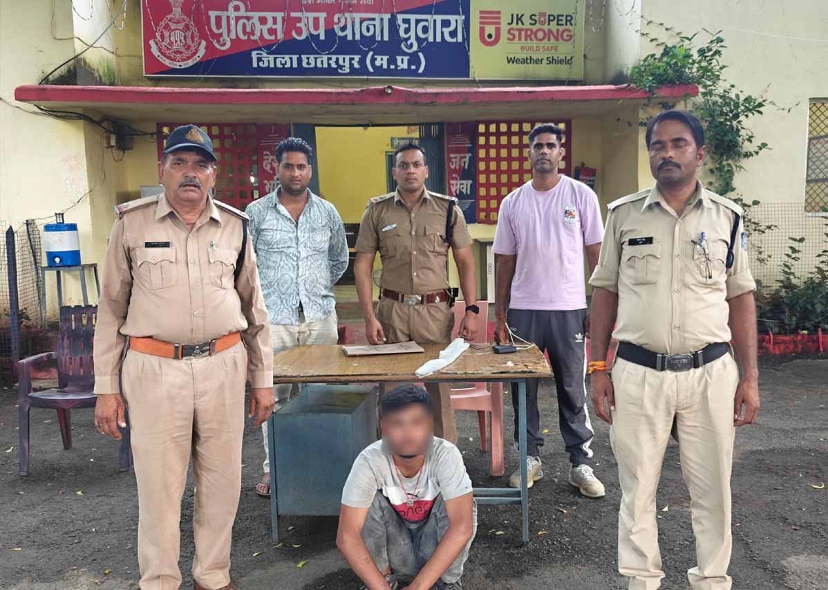 चौकी घुवारा पुलिस द्वारा फरार आरोपी की हर संभावित स्थानों में तलाश की जा रही थी। पुलिस टीम द्वारा आज आरोपी अंकी मिश्रा उर्फ हरिनारायण मिश्रा निवासी ग्राम सिमरिया को 24 घंटे के अंदर गिरफ्तार किया गया, प्रयुक्त अवैध धारदार हथियार तलवार आरोपी के पास से बरामद कर जप्त किया गया। आरोपी के विरुद्ध पिछले वर्ष थाना शाहगढ़ जिला सागर में छेड़छाड़ एवं अपहरण का अपराध पूर्व से दर्ज है। अभियुक्त को गिरफ्तार कर न्यायालय पेश किया जा रहा है।