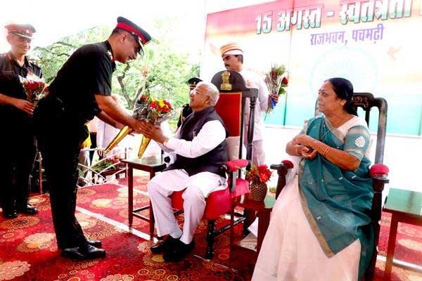 राज्यपाल मंगुभाई पटेल ने राजभवन पचमढ़ी में स्वागत समारोह में आमंत्रित अतिथियों के साथ स्वतंत्रता दिवस की शुभकामनाओं का आदान-प्रदान किया। सेना के बैंड द्वारा सुमधुर रागनियों की प्रस्तुतियाँ दी गई। बैंड की धुनों ने देशप्रेम और राष्ट्र- भक्ति की अविरल धारा प्रवाहित कर श्रोताओं को मंत्र-मुग्ध कर दिया।