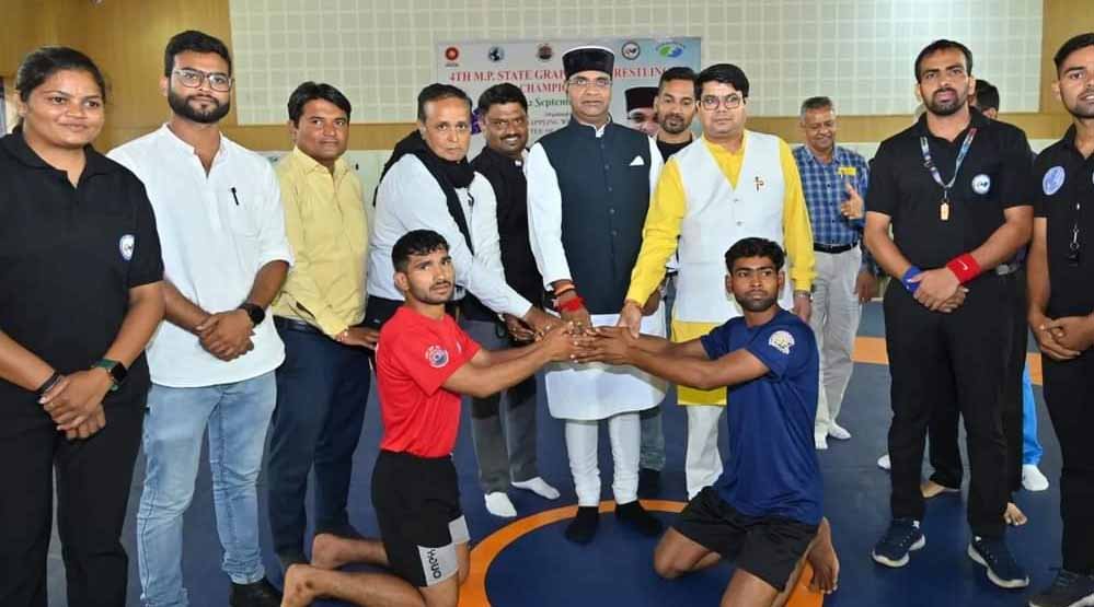 ग्रेपलिंग रेसलिंग कमेटी ऑफ मध्य प्रदेश द्वारा दिनांक 12 सितंबर 2024 को रेसलिंग हाल, तात्या टोपे स्टेडियम भोपाल में राज्य स्तरीय ग्रेपलिंग प्रतियोगिता का समापन हुआ। इस आयोजन मे प्रदेश के लगभग 15 जिलों के 150 खिलाड़ीयो और 20 कोच भाग लिया। प्रतियोगिता के समापन समारोह में श्री विश्वास कैलाश सारंग "खेल मानती" कार्यक्रम के मुख्य अतिथ्य और श्री हिमांशु अत्रवाल अध्यक्ष, श्री एहिशम उद्दीन सचिव ग्रेपलिंग् रेसलिंग कमेटी ऑफ मध्य प्रदेश के विशेष अतिथ्य मे संपन्न हुआ प्रतियोगिता मे जिले की समितियों के पदाधिकारीगण, कार्यकारिणी सदस्यगण तथा श्री आकाश दंडोतिया और कु.इशिका दीक्षित ज्योति नरवरिया राष्ट्रीय कोच एवम रेफरी द्वारा अंडर 11,13 ,15 केडेट जूनियर एवम सीनियर वर्ग मे एवम वेटरनर वर्ग मे ग्रेपलिंग रेसलिंग की खेल प्रतियोगिता का समापन समारोह मुख्य अतिथि श्री विश्वास कैलाश सारंग "खेल मंत्री ने अपने उधवोधन मे सभी खिलाडियों से आव्हान किया की आप दिल लगा कर मेहनत करे आपको राष्ट्रीय स्तर और उससे आगे पहुँचने का काम हम करेंगे स्वागत भाषण एहति शाम उद्दीन "ज़ुबेद" ने दिया हिमांशु अत्रियाल अध्यक्ष म. प्रा. ग्रेपलिंग कमेटी ने सभी जिला कमेटी के पदाधिकारियों एवम खिलाडियों से कहा अब आप मध्यप्रदेश का नाम रोशन करने की तैयारी करे हमारी कमेटी आपके लिए संभव मदद के लिये सदेव तत्पर रहेगी तथा धन्यवाद प्रवीण पाटिल उपाध्यक्ष म. प्रा. ग्रेपलिंग कमेटी ने किया डॉ मानवेंद्र सिंह, दुर्गेश सक्सेना, विकास शर्मा सह सचिव, भूपेंद्र भट्ट कोषाध्यक्ष, साजिद मसूद, प्रियंका ज़ोनवाल, राजेंद्र बरस्कर, शैलेंद्र यादव, छत्रसाल, ज्योति