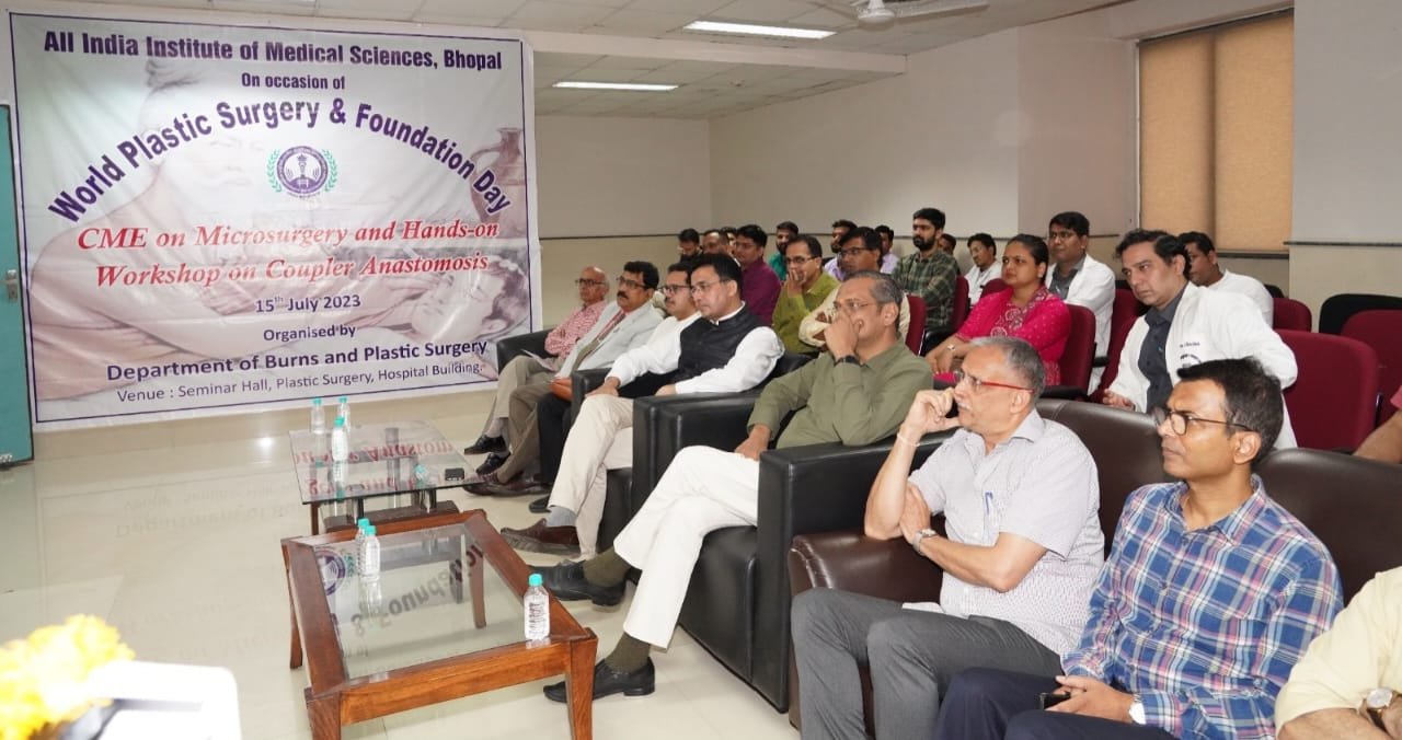 बर्न्स एंड प्लास्टिक सर्जरी विभाग, एम्स भोपाल ने विश्व प्लास्टिक सर्जरी दिवस और विभाग के स्थापना दिवस के अवसर पर 15 जुलाई 2023 को माइक्रोसर्जरी पर एक सीएमई और कपलर एनास्टोमोसिस पर हैंड्स-ऑन कार्यशाला का आयोजन किया । एम्स भोपाल के अध्यक्ष डॉ. सुनील मलिक ने अपनी उपस्थिति से कार्यक्रम की शोभा बढ़ाई और विभाग को अब तक हुई उत्कृष्ट प्रगति के लिए बधाई दी । एम्स भोपाल के कार्यपालक निदेशक प्रोफेसर (डॉ.) अजय सिंह इस कार्यक्रम में शामिल हुए और विभाग के संबंध में अपनी अंतर्दृष्टि और मार्गदर्शन प्रदान किया । उन्होंने रोगी देखभाल, शिक्षण/प्रशिक्षण और अनुसंधान की गुणवत्ता में सुधार के लिए स्किन बैंक की स्थापना और फ़ेलोशिप कार्यक्रम शुरू करने की पेशकश की ।