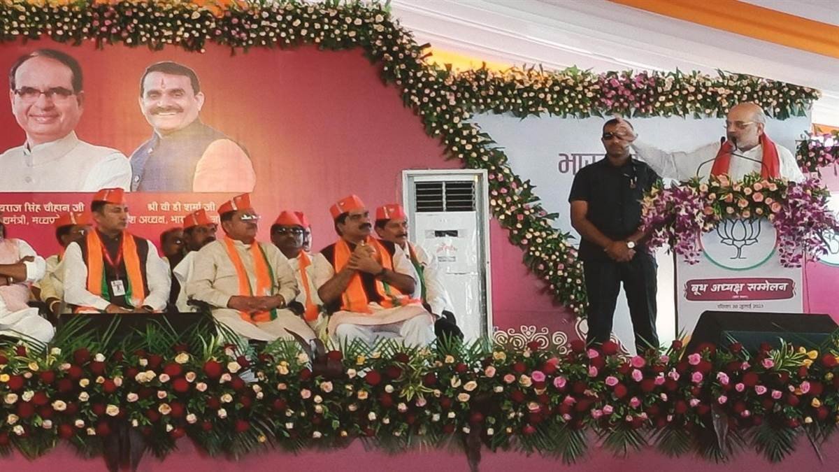 अमित शाह ने कार्यकर्ताओं को संबोधित करने की शुरुआत उन्होंने इंदौर की देवी अहिल्या बाई होल्कर को याद करके की। शाह ने कहा कि मध्यप्रदेश में अभी संभागों में सम्मेलन होना है। सबसे पहला सम्मेलन मालवा में हो रहा है। विदेश में ये मोदी मोदी के नारे मोदी और भाजपा के लिए नहीं लग रहे। ये नारे भारत की जनता के सम्मान में लगते हैं।