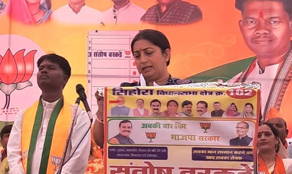 केंद्रीय मंत्री श्रीमती स्मृति ईरानी ने कहा कि सिहोरा विधानसभा क्षेत्र से भाजपा प्रत्याशी संतोष भैया को अपना आशीर्वाद प्रदान करें और प्रचंड मतों से जिताकर विधायक बनाएं। भारतीय जनता पार्टी हमेशा विकास की बात करती है। भाजपा सदैव विकास की पक्षधर रही है। जब से प्रधानमंत्री नरेंद्र मोदी जी के नेतृत्व में केंद्र सरकार बनी है, भारत तेजी से विकास कर रहा है। मध्यप्रदेश में भी भाजपा की डबल इंजन की सरकार ने विकास करके प्रदेश को विकसित राज्य बनाया है। फिर एक बार भाजपा की सरकार बनाइए, भाजपा आपके प्रदेश को स्वर्णिम प्रदेश बनाने में कोई कसर नहीं छोड़ेगी। उन्होंने कांग्रेस पार्टी पर कटाक्ष करते हुए कहा कि इनके नेताओं को विकास से कोई वास्ता नहीं है। कांग्रेस के नेता हमेशा अपने परिवार का भला करने की सोचते हैं, जनता की भलाई नहीं करते। भाजपा सरकार हमेशा जनता को लाभान्वित करने वाली योजनाएं संचालित करती है, ताकि जनता को अधिक से अधिक सीधे लाभ पहुंचाया जा सके।