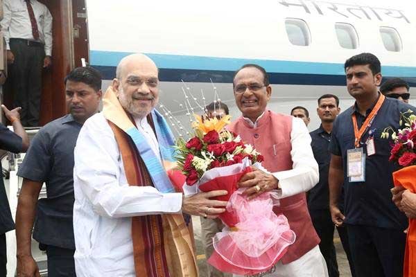 केंद्रीय गृह एवं सहकारिता मंत्री अमित शाह भोपाल प्रवास पर आए। शाह के भोपाल आगमन पर आज स्टेट हैंगर पर मुख्यमंत्री शिवराज सिंह चौहान, गृहमंत्री डॉ. नरोत्तम मिश्रा, खजुराहो सांसद वी.डी. शर्मा, महापौर श्रीमती मालती राय, पुलिस महानिदेशक सुधीर सक्सेना, सीआरपीएफ के अधिकारी और अन्य जन-प्रतिनिधियों ने उनका पुष्प-गुच्छ भेंट कर आत्मीय स्वागत किया।