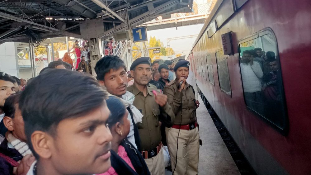 •    रेल सुरक्षा बल (RPF) के जवान चौबीसों घंटे सतर्क रहते हुए संदिग्ध गतिविधियों पर नजर रख रहे हैं।