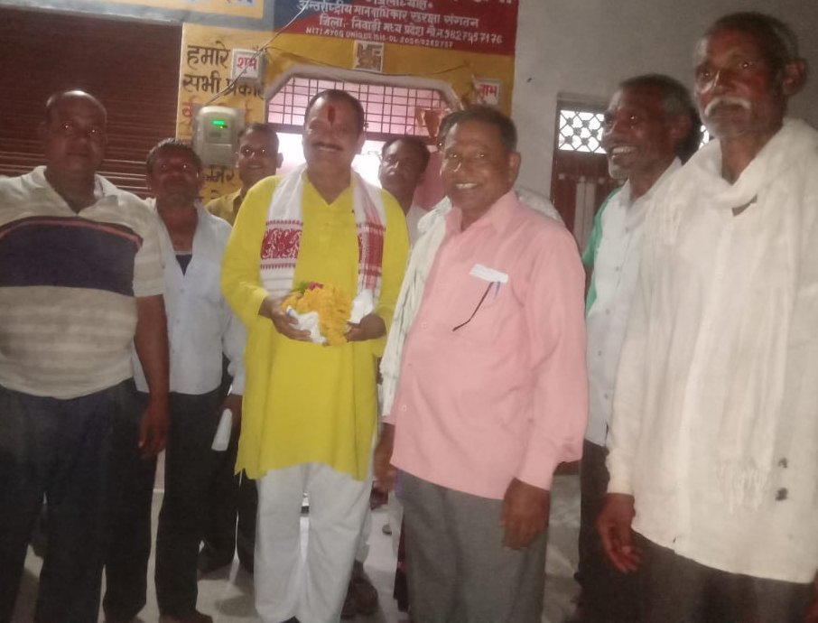 माननीय अंतर्राष्ट्रीय मानव अधिकार सुरक्षा संगठन के प्रदेश अध्यक्ष यशस्वी अशोक सिंह राय के आदेश अनुसार आज दिनांक 30.6.2023 को रामराजा नगरी ओरछा में जिला अध्यक्ष विष्णु कुमार शर्मा के निवास पर अंतर्राष्ट्रीय मानव अधिकार सुरक्षा संगठन की मीटिंग रखी गई जिसमें उपस्थित अंतर्राष्ट्रीय मानव अधिकार के जिला कार्यकारिणी अध्यक्ष कोमल प्रसाद वासुदेव एवं गणेश प्रसाद कुशवाहा जिला संगठन मंत्री एवं गजाधर कुशवाहा जिला महामंत्री एवं राजेंद्र कुशवाहा जिला उप महामंत्री एवं गौरव बिधौलिया उप संगठन मंत्री एवं राकेश कुशवाहा जिला वरिष्ठ संयोजक एवं बालमुकुंद कुशवाहा जिला प्रमुख सचिव एवं मनीष कुमार ओझा जिला कोषाध्यक्ष एवं महिला मोर्चा की जिला अध्यक्ष मीना राय जी एवं की जिला उपाध्यक्ष प्रीति सोनी जी एवं क्षेत्र के गणमान्य नागरिक परशुराम केवट जी एवं बृजेश सोनी जी एवं आनंद वासुदेव जी एवं अखिलेश तिवारी जी एवं बीजेपी संसद प्रतिनिधि राजेश पटेरिया जी एवं बीजेपी के डॉक्टर महेंद्र जी मीटिंग में उपस्थित रहे तथा संसद प्रतिनिधि राजेश पटेरिया ने सभी पदाधिकारियों से मुलाकात की और क्षेत्र की समस्याओं के बारे में जानकारी ली जो सभी पदाधिकारियों ने अपने अपने विचार विमर्श कर संसद प्रतिनिधि राजेश पटेरिया को अवगत कराया तथा राजेश पटेरिया द्वारा कुछ समस्याओं का निराकरण तत्काल करवाया तथा को समस्याओं का एक-दो दिन का आश्वासन दिया तथा संसद प्रतिनिधि राजेश पटेरिया ने अंतर्राष्ट्रीय मानव अधिकार सुरक्षा संगठन के 25 पदाधिकारियों से मिलकर संगठन की सराहना की और आश्वासन दिया कि जन हितेसी कार्यों में मैं हमेशा संगठन के साथ रहूंगा एवं अंतर्राष्ट्रीय मानव अधिकार सुरक्षा संगठन द्वारा राजेश पटेरिया का साल श्रीफल एवं पुष्प माला द्वारा सभी पदाधिकारियों ने भव्य स्वागत किया गया इसी के साथ अंतरराष्ट्रीय मानव अधिकार सुरक्षा संगठन ने ठाना है कि रिश्वतखोरी को मिटाना है इसी के साथ मीटिंग समाप्त की