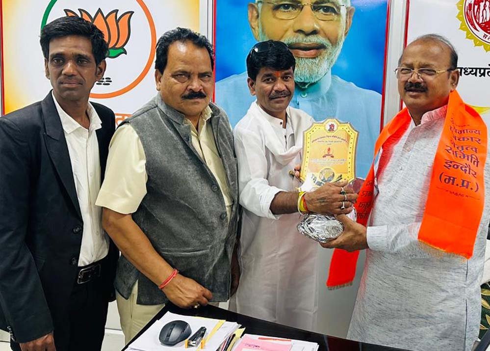 मध्य प्रदेश शासन के मंत्री भाई दिलीप जायसवाल से मुलाकात कर,समिति अध्यक्ष अधिमान्य पत्रकार नेतृत्व समिति डल्लू कुमार सोनी एवं मध्य प्रदेश समिति अध्यक्ष प्रीतम कुमार वर्मन,छत्तीसगढ़ प्रदेश महासचिव धर्मेंद्र वस्त्रकर संयुक्त मुलाकात कर वार्तालाप कर स्मृति चिन्ह देकर देकर सम्मान करते हुए।