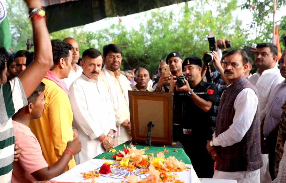 स्कूल शिक्षा मंत्री एवं कटनी जिले के प्रभारी मंत्री उदय प्रताप सिंह, पशुपालन एवं डेयरी विकास राज्य मंत्री लखन पटेल और खजुराहो सांसद बी.डी. शर्मा सिक्किम के पाक्योंग में गुरुवार 5 सितम्बर को हुई सड़क दुर्घटना में शहीद जवान 24 वर्षीय प्रदीप पटेल को श्रद्धांजलि अर्पित करने आज उनके पैतृक गाँव हरदुआकला पहुँचे।
