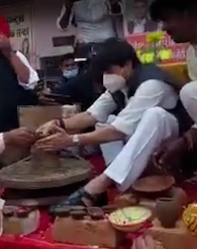 कार्यक्रम स्थल पर जाने के दौरान बहोड़ापुर इलाके से उनका काफिला निकल रहा था। इसी दौरान सड़क किनारे एक कुम्हार को चाक पर दीया बनाते देखा। सिंधिया ने काफिला रुकवाया। फिर कुम्हार को किनारे हटाकर खुद जमीन पर बैठकर चाक थाम लिया। उन्होंने चाक घुमाकर मिट्टी का दीया बनाया। इसके बाद कुम्हार को धन्यवाद देते हुए आगे चल दिए।