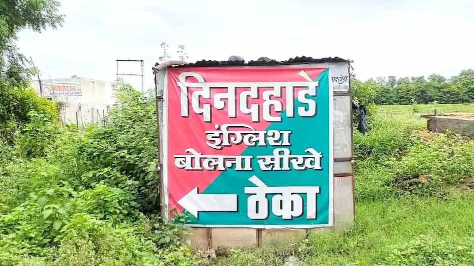 बुरहानपुर में एक अंग्रेजी शराब दुकान के पास लगा अजीबोगरीब पोस्टर चर्चा का केंद्र बना हुआ है. इस पोस्टर को देखकर राहगीर खासकर युवा और छात्र काफी भ्रमित हो रहे हैं. दरअसल, पोस्टर पर लिखा है- 'दिनदहाडे इंग्लिश बोलना सीखें.'