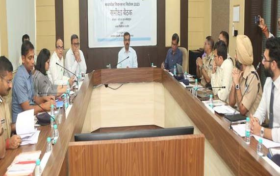 मुख्य निर्वाचन पदाधिकारी अनुपम राजन ने गुरुवार को आरसीव्हीपी नरोन्हा प्रशासन एवं प्रबंधकीय अकादमी भोपाल में भोपाल एवं नर्मदापुरम संभाग के अंतर्गत आने वाले 8 जिलों के कलेक्टर एवं जिला निर्वाचन अधिकारी एवं पुलिस अधीक्षकों के साथ बैठक की। राजन ने मध्यप्रदेश विधानसभा निर्वाचन 2023 को लेकर जिलों में की जा रही तैयारियों की विस्तार से समीक्षा की। बैठक में उपस्थित दोनों संभागों के कलेक्टर एवं जिला निर्वाचन अधिकारियों एवं पुलिस अधीक्षकों ने अपने-अपने जिलों में की जा रही तैयारियों के बारे में पीपीटी के माध्यम से विस्तार से जानकारी दी। बैठक में पुलिस महानिरीक्षक, कानून व्यवस्था, सुरक्षा मध्यप्रदेश एवं राज्य पुलिस नोडल अधिकारी अनुराग, संयुक्त मुख्य निर्वाचन पदाधिकारी राकेश सिंह व श्रीमती रूचिका चौहान, भोपाल एवं नर्मदापुरम संभाग के आयुक्त डॉक्टर पवन कुमार शर्मा, दोनों संभागों के पुलिस रेंज के आईजी, डीआईजी सहित भोपाल, विदिशा, रायसेन, सीहोर, राजगढ़, नर्मदापुरम, बैतूल एवं हरदा जिले के कलेक्टर एवं जिला निर्वाचन अधिकारी तथा पुलिस अधीक्षक उपस्थित थे।