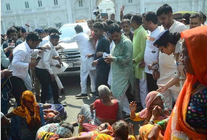 पहले तो महल के सुरक्षा कर्मियों ने सर्मथकों को अंदर घुसने नहीं दिया, लेकिन बाद में महल परिसर में दाखिल होते ही सर्मथकों ने सुरक्षा कर्मियों के साथ धक्कामुक्की कर दी। इसको लेकर सुरक्षा कर्मचारी भी आगबबूला हो गए। हालांकि बात ज्यादा बिगड़ी उसके पहले ही कुछ लोगों ने मामला शांत कराया। वहीं केंद्रीय मंत्री ज्योतिरादित्य सिंधिया का रास्ता रोककर उनकी गाड़ी के सामने महिलाएं लेट गई और टिकिट बदलने की मांग की।