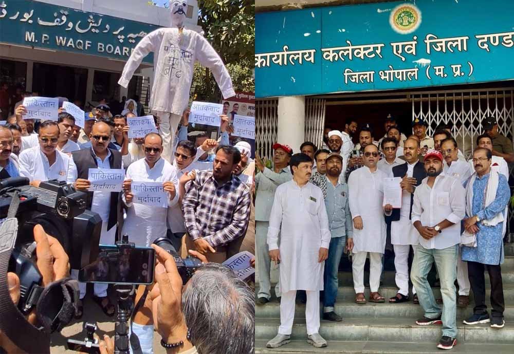 भारतीय जनता पार्टी के प्रदेश प्रवक्ता व मध्यप्रदेश वक्फ बोर्ड के अध्यक्ष सनवर पटेल के नेतृत्व में पहलगाम में हुए आतंकवादी हमले के विरोध में बुधवार को भोपाल स्थित मध्यप्रदेश वक्फ बोर्ड परिसर में पाकिस्तान और आतंकवाद का पुतला दहन किया गया। सनवर पटेल के नेतृत्व में मुस्लिम समाज का एक प्रतिनिधिमंडल कलेक्टर कार्यालय पहुंचकर आतंकवाद के खात्मे के लिए देश की राष्ट्रपति के नाम भोपाल कलेक्टर को ज्ञापन सौंपा। इस दौरान भाजपा अल्पसंख्यक मोर्चे के प्रदेश अध्यक्ष एम एजाज खान, मोर्चे के जिला अध्यक्ष शहरयार अहमद, जिला वक्फ कमेटी अध्यक्ष इरशाद अंसारी, असलम इलयास, रमीज कुरैशी सहित समाज के लोग उपस्थित रहे।
