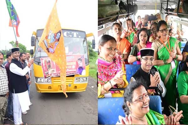 मंत्री श्री सारंग ने बहनों के साथ बस में किया भजन-कीर्तन