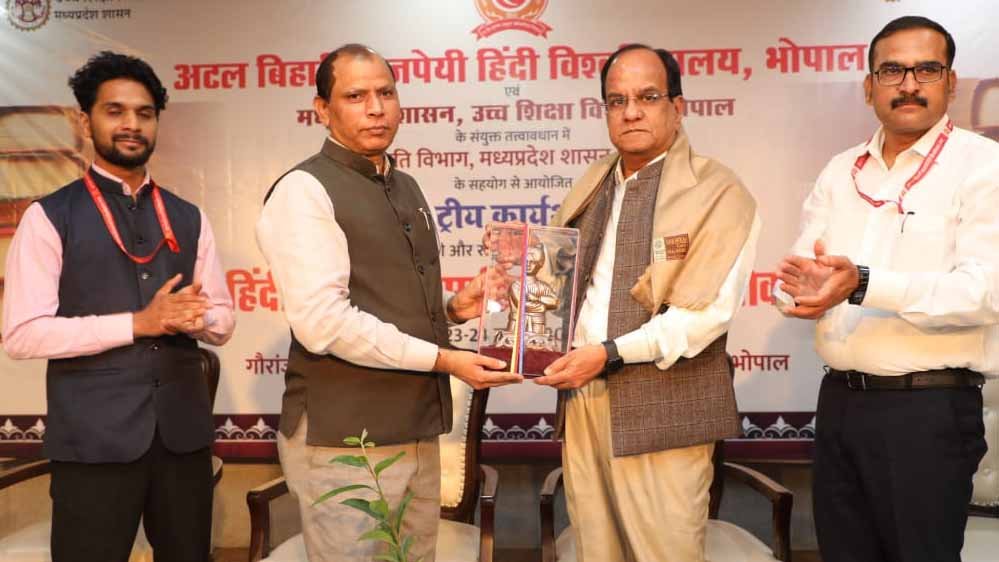 अटल बिहारी वाजपेयी हिंदी विश्वविद्यालय भोपाल द्वारा भारतीय ज्ञान प्रणाली और राष्ट्रीय शिक्षा नीति 2020 के परिप्रेक्ष्य में हिंदी भाषा और साहित्य का पुनरावलोकन विषय पर आयोजित दो दिवसीय राष्ट्रीय कार्यशाला का आज रवींद्र भवन के गौराञ्जनी सभागार में शुभारंभ हुआ।