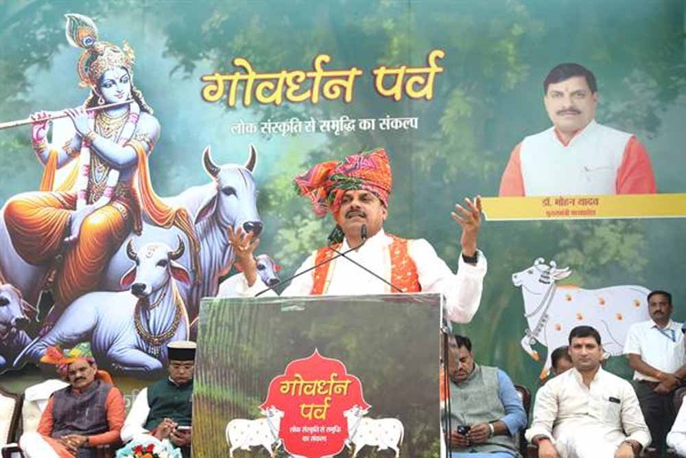 मुख्यमंत्री डॉ. ने कहा कि प्रधानमंत्री श्री नरेन्द्र मोदी के संकल्प को पूरा करने के लिए मध्यप्रदेश गौ-वंश संरक्षण सहित अन्य क्षेत्रों में कार्य कर रहा है। भारत विश्व में 5वीं बड़ी अर्थव्यवस्था है। शीघ्र ही भारत तीसरी बड़ी अर्थव्यवस्था होगा। ग्रामों में कृषि कार्य के साथ पशुपालन एवं गौ-पालन किसान की आर्थिक समृद्धि में सहयोगी है। शहरों में भी गौपालन से पशुपालक अपनी आय बढ़ा सकते हैं। मध्य प्रदेश इस क्षेत्र में निरंतर कार्य कर रहा है। पशुधन संरक्षण के प्रयास किए जा रहे हैं। उन्होंने कहा कि आज राज्य स्तर पर गोवर्धन पूजा कार्यक्रम में जनप्रतिनिधि पूरे प्रदेश में कार्यक्रमों में हिस्सा ले रहे हैं। मुख्यमंत्री डॉ. यादव ने कहा कि गोवर्धन पूजा हमारी संस्कृति की प्रतीक भी है, जिससे विश्व में भारत की पहचान है।