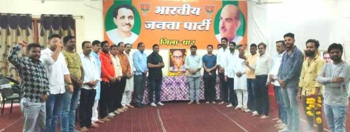 भारतीय जनता पार्टी के पूर्व राष्ट्रीय अध्यक्ष पित्र पुरुष श्रद्धेय कुशाभाऊ ठाकरे जी की जयंती जन्माष्टमी पर्व पर 19 अगस्त को पूरे प्रदेश में आदरांजलि कार्यक्रम आयोजित किए जा रहे हे। नगर भाजपा द्वारा जिला मुख्यालय पार्टी कार्यालय कुशाभाऊ ठाकरे भवन पर शुक्रवार को  भाजपा जिला अध्यक्ष राजीव यादव वरिष्ठ नेता पूर्व जिला उपाध्यक्ष डॉ शरद विजयवर्गीय, सहित कुशाभाऊ ठाकरे जी भतीजे श्री प्रशांत ठाकरे, मंडल अध्यक्ष विपिन राठौर नितेश अग्रवाल,एवं पार्टी के पदाधिकारीयों द्वारा स्व. कुशाभाऊ ठाकरे जी के चित्र पर श्रद्धासुमन अर्पित कर उनका पुण्य स्मरण किया।  भाजपा जिला अध्यक्ष राजीव यादव  ने ठाकरे जी के जीवन पर प्रकाश डालते हुए कहा की भारतीय जनता पार्टी के वरिष्ठ नेता श्रद्धेय कुशाभाऊ ठाकरे ने राजनीति क्षेत्र में काम करते हुए हमेशा सामाजिक भूमिका निभाई और इसी कारण न सिर्फ भारतीय जनता पार्टी बल्कि अन्य दलों और अन्य क्षेत्रों के लोगों में भी उनकी लोकप्रियता थी। उन्होंने कहा कि मध्यप्रदेश की राजनीति में किसी भी दल का कोई व्यक्ति ऐसा नहीं है जो ठाकरे जी के प्रभाव से अछूता रहा हो। ठाकरे जी ऐसा व्यक्तित्व थे जिसमें लाखों लाख कार्यकर्ताओं को गढने का प्रयास किया। वो सांसद, विधायक, संगठक, अध्यक्ष, कार्यकर्ता, मुख्यमंत्री बनाते थे। उन्होंने ठाकरे जी से जुड़ा संस्मरण सुनाते हुए कहा कि कार्यकर्ता को कब, क्या संदेश देना है यह ठाकरे जी अपने भाषण से नहीं आचरण से सिखाते थे। उन्होंने कहा कि ठाकरे जी से जुडे ऐसे अनेक संस्मरण है जो कार्यकर्ता निर्माण का काम उनके इस धरती पर न रहने के बावजूद भी आगे बढाते रहेंगे। उन्होंने कहा किहम जैसे सामान्य कार्यकर्ता के लिए गर्व की बात है की श्री ठाकरे जी का जन्म धार में हुआ।