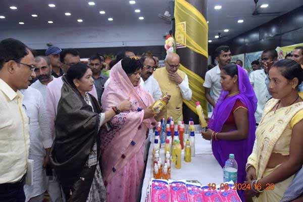 उन्होंने जिले में आजीविका समूह द्वारा बनाये जाने वाले उत्पादों, साबुन, फिनायल, झाड़ू, मच्छरदानी आदि के स्टॉल का अवलोकन कराया गया। उन्होंने समूहों द्वारा उत्पादित अन्न, कोदो, कुटकी एवं अन्य उत्पादों से बनी हुई सामग्री, मसाले, हैंडलूम उत्पाद, मधुबनी पेंटिंग तथा अन्य जनरल गुड्स के स्टॉल्स का अवलोकन किया। समूह की बहनों द्वारा दोनों मंत्री को उत्पाद भी भेंट किए गए।