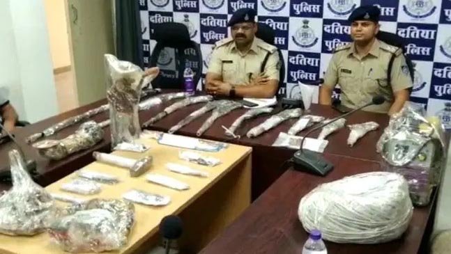 दतिया के गणेशपुरा में पुलिस को बड़ी सफलता मिली है, पुलिस ने यहाँ अवैध हथियार बनाने वाली फैक्टरी पकड़ी है। यह अवैध हथियार बनाने वाली फैक्टरी पंचायत चुनाव में हथियार खपाने के लिये लगाई गई थी। पुलिस ने 12 अवैध हथियार फैक्टरी उपकरण के साथ आरोपी परशुराम झा को गिरफ्तार किया है। आज स्थानीय पुलिस कंट्रोल रुम में एएसपी कमल मौर्य ने प्रेस कॉन्फ्रेंन्स के माध्यम से बताया। आरोपी को रिमांड पर लेकर पूंछताछ की जा रही है। पूछताछ में अन्य हथियार मिलने की संभावना है।