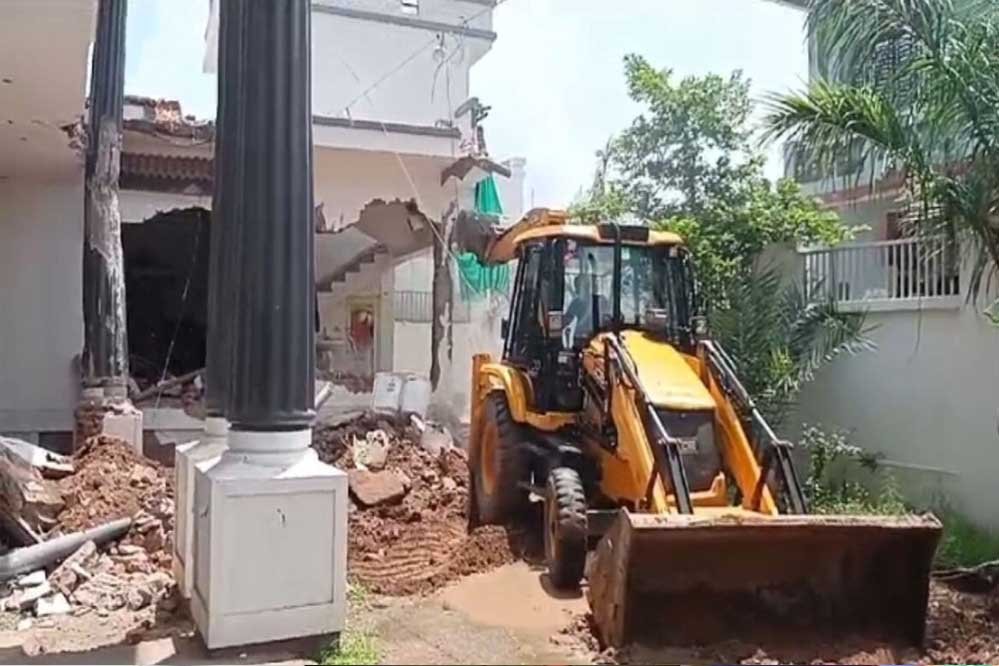 कोतवाली थाने में उपद्रव करने वालों पर बड़ी कार्यवाही की जा रही है. मध्य प्रदेश के मुखिया डॉक्टर मोहन यादव के ट्वीट के बाद प्रशासन ने बड़ी कार्यवाही को अंजाम दिया है. कोतवाली थाने पर पथराव करने वालों के मकानों पर चल रहा बुलडोजर चलाने की कार्रवाई की जा रही है. भारी पुलिस फोर्स और प्रशासन की टीम मौके पर मौजूद है. छतरपुर शहर के मस्तान साहब कॉलोनी में हाजी शहजाद अली के मकान को बुलडोजर की मदद से गिराया जा रहा है.