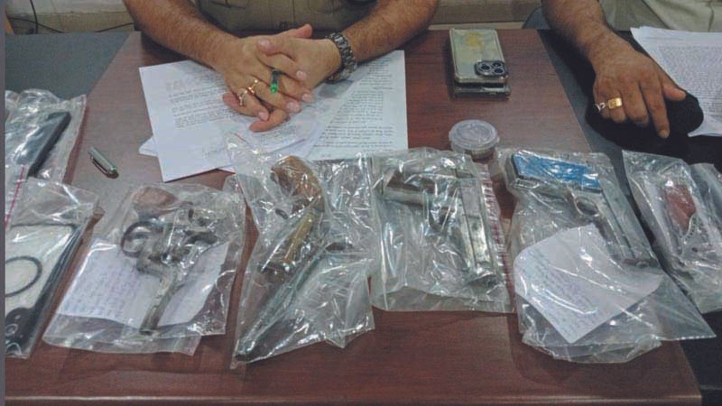 तलाशी में मिली, पिस्टल, रिवाल्वर