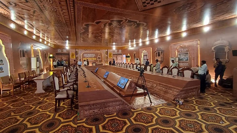 जिस परिसर में बैठक होगी। उसे मालवी निमाड़ी अंदाज में सजाया गया है। दीवारों पर मांडने व संजा सजाए गए है। इसके अलावा रंग-बिरंगी वंदनदार भी सजाई गई है। परिसर के मुख्य गेट पर महेश्वर किले की प्रतिकृति बनाई गई है।