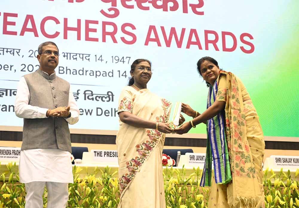 राष्ट्रपति श्रीमती द्रौपदी मुर्मु ने शिक्षक दिवस पर नई दिल्ली के विज्ञान भवन में मध्यप्रदेश के 2 शिक्षकों को शिक्षा के क्षेत्र में उनके उल्लेखनीय कार्य के लिये राष्ट्रीय शिक्षक पुरस्कार प्रदान किया। इस मौके पर केन्द्रीय शिक्षा मंत्री श्री धर्मेन्द्र प्रधान भी मौजूद थे। पुरस्कार स्वरूप सम्मानित शिक्षकों को शॉल-श्रीफल और स्मृति चिन्ह भेंट किया गया।