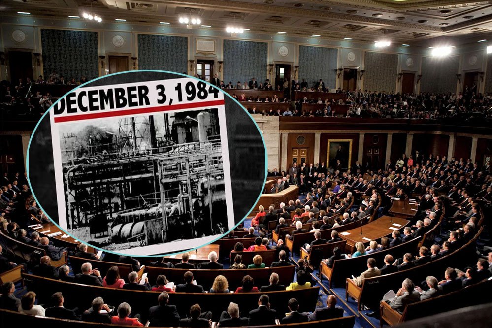 भोपाल गैस त्रासदी की 40वीं बरसी के अवसर पर अमेरिकी संसद में 3 दिसंबर को 'राष्ट्रीय रासायनिक आपदा जागरूकता दिवस' के रूप में मनाने का प्रस्ताव पेश किया गया। यह प्रस्ताव सीनेटर जेफ मर्कले और प्रतिनिधि सभा की सदस्य प्रमिला जयपाल और रशीदा तलैब द्वारा पेश किया गया। प्रस्ताव में 2001 में हुए भारत-अमेरिका समझौते का जिक्र किया गया है, जिसमें न्याय के लिए सहयोग की बात कही गई थी। यूनियन कार्बाइड के मालिक डॉव इंक से न्यायिक जिम्मेदारियों को पूरा करने की अपील भी की गई।