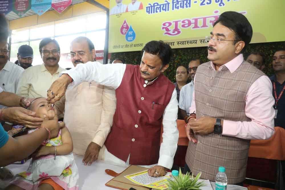 पल्स पोलियो अभियान में पाँच साल तक के बच्चों को पोलियो की दवा पिलाई गई