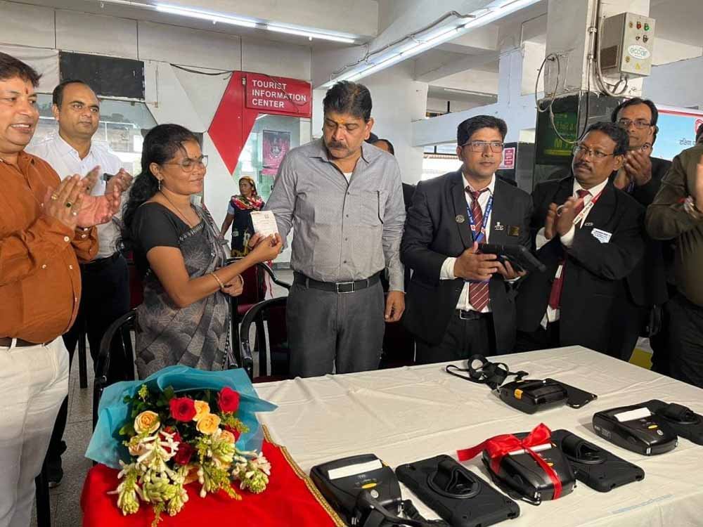 रायपुर रेलवे स्टेशन में DRM ने 5 टीटीई स्टॉफ को मोबाइल यूटीएस टिकटिंग के उपकरण दिए. इस उपकरण के माध्यम से टीटीई सीधे यात्रियों को टिकट दे सकेंगे. हालांकि ये टिकट यात्री टिकट काउंटर के पास ही ले सकेंगे, उन्हें ये सुविधा ट्रेन के अंदर या प्लेटफार्म में उपलब्ध नहीं होगी.