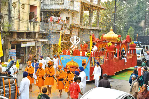 राजनांदगांव, सिख समाज के दसवें गुरु गोविंद सिंह साहिब के आगमन प्रकाश पर्व पर शनिवार को शहर में आकर्षक रथ के साथ विशाल शोभायात्रा निकाली गई। पुष्प वर्षा कर इसका स्वागत किया गया।