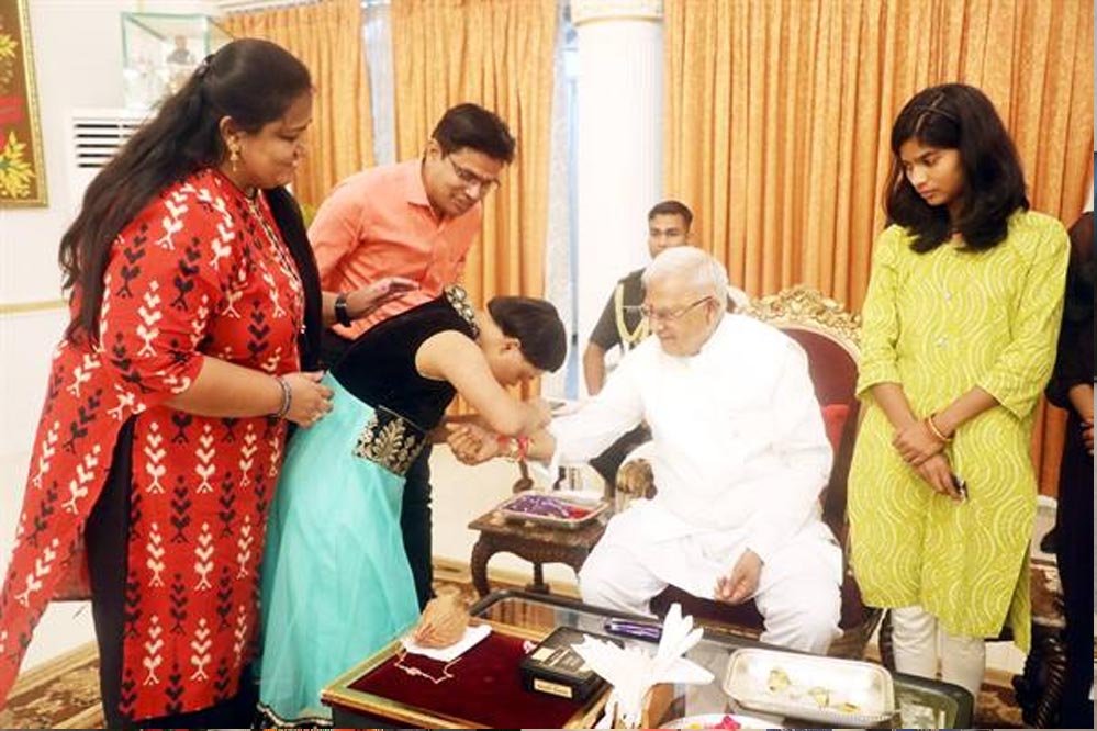 राज्यपाल मंगुभाई पटेल की गरिमामय उपस्थिति में राजभवन में रक्षाबंधन पर्व मनाया गया। राज्यपाल पटेल को भोपाल के एस.ओ.एस. बालग्राम, नेशनल एसोसिएशन फॉर द ब्लाइंड की बालिकाओं और प्रजापिता ब्रह्मकुमारी ईश्वरीय विश्वविद्यालय की बहनों ने राखी बांधी।