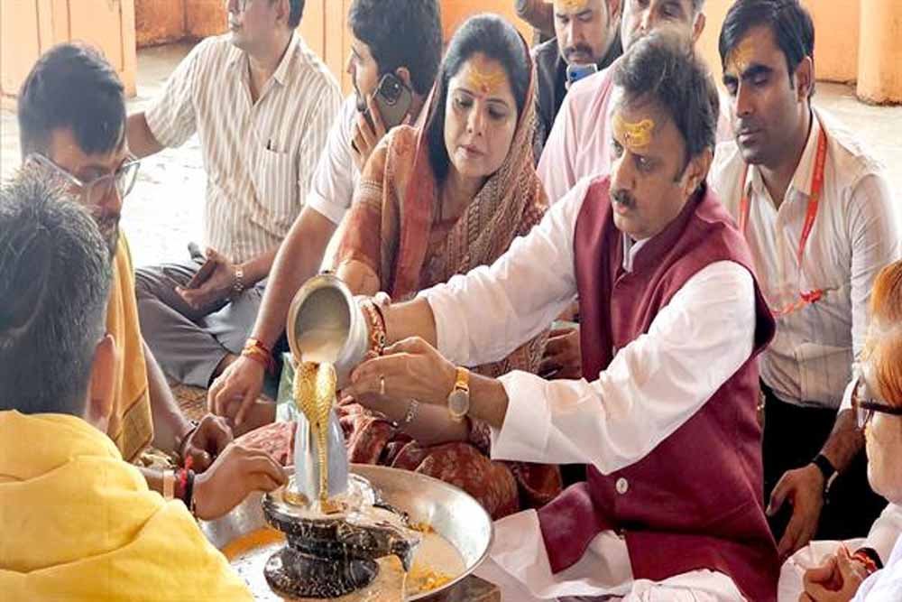 ओंकारेश्वर में की पूजा अर्चना