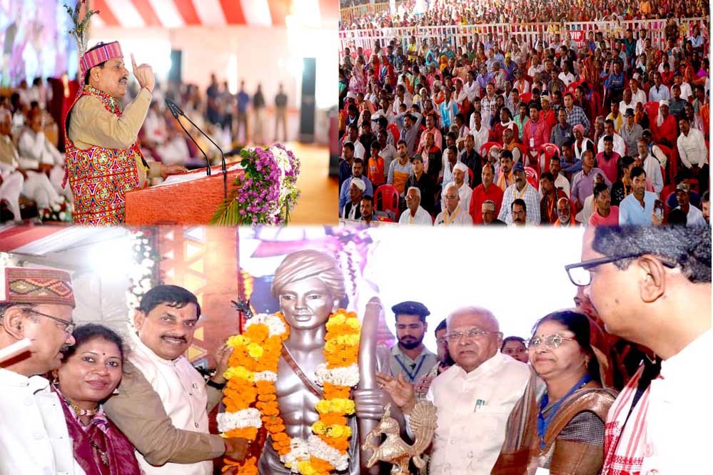 मुख्यमंत्री ने कहा भगवान बिरसा मुंडा के संघर्ष को देशवासी जानते तो थे लेकिन मानते नहीं थे 15 नवम्बर को आदिवासियों के गौरव को सच्चे अर्थों में बनाने का काम किसी ने किया है तो हमारे प्रधानमंत्री नरेंद्र मोदी ने किया है उनके कारण ही आज देश की जनता बिरसा मुंडा के संघर्ष उनकी तपस्या और देश के लिए दिए योगदान को जान पाया है।