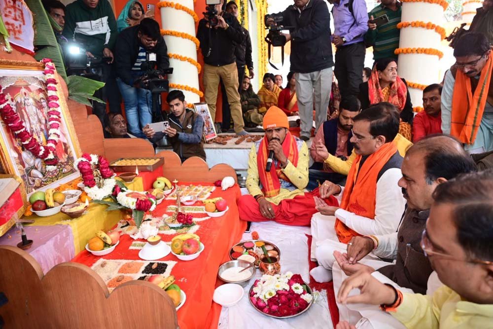 भगवान भी श्रीराम के लिए अयोध्या में हो रहे आयोयन के उपलक्ष्य में भाजपा ने अपने कार्यालय में स्थिति भगवान शिव और हनुमान के मंदिर में अखंड रामायण का पाठ आयोजित किया है। इसमें 11 पंड़ित ने पहले भगवान शिव और उनके परिवार के बाद भगवान हनुमान की पूजा अर्चना वैदिक मंत्रोच्चार के साथ की। पूजा अर्चना में प्रदेश भाजपा अध्यक्ष वीडी शर्मा, प्रदेश भाजपा के कार्यालय मंत्री राघवेंद्र शर्मा सहित अन्य नेता शामिल हुए। देश में इस तरह का पहला आयोजन है जब 108 दिव्यांगजन ब्रेल लिपि अखंड रामायण का पाठ कर रहे हैं। हवन-पूजन के साथ अखंड रामायण पाठ का समापन सोमवार की सुबह होगा। उसके उपरांत प्रसाद का वितरण किया जाएगा। इस आयोजन के लिए मंदिर परिसर को सजाया गया है।