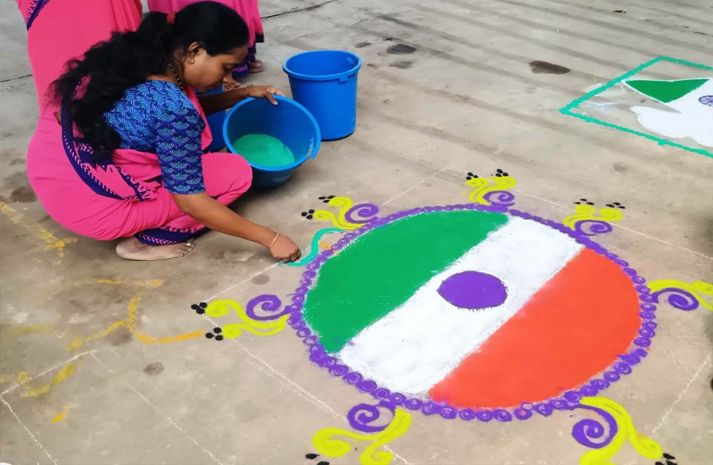 हर घर तिरंगा अभियान में प्रदेश के सभी जिलों में राष्ट्रध्वज के प्रति सम्मान और समर्पण के लिये जागरूकता कार्यक्रम आयोजित किए जा रहे हैं। बुरहानपुर जिले की शाहपुर नगर परिषद कार्यालय के प्रांगण में महिला बाल विकास विभाग की आंगनवाड़ी कार्यकर्ताओं द्वारा आकर्षक रंगोली बनाकर राष्ट्रध्वज के प्रति जागरूकता का संदेश दिया गया।