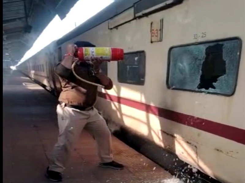 बुंदेलखंड एक्सप्रेस के थर्ड एसी कोच में गुरुवार धुआं उठने से यात्रियों में हड़कंप मच गया। ट्रेन में आग की आशंका देखते हुए आनन-फानन में रेल कर्मचारियों और जीआरपी के जवानों ने अग्निशामक यंत्र के सिलेंडर का इस्तेमाल कर चार खिड़कियों के शीशे तोड़ दिए। बाद में पता चला कि ट्रेन में पेस्ट कंट्रोल (कीटनाशक) का छिड़काव करने के साथ ही फागिंग की गई थी, जिसके चलते धुआं उठने लगा था। शीशे तोड़ने के दौरान जीआरपी के जवान सूरज पाराशर के हाथ में चोट भी लग गई।