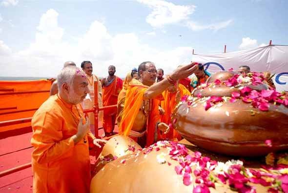 मुख्यमंत्री चौहान ने ओंकारेश्वर में संत समुदाय के साथ आदि गुरु शंकराचार्य की 108 फीट ऊँची प्रतिमा का किया अनावरण