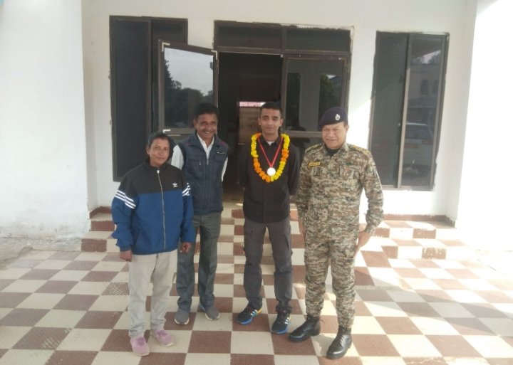 पुलिस अधीक्षक संजय सिंह ने जिले के गोल्ड दिव्यांश जैन पिता दिनेश जैन माता शिल्पा जैन के सुपुत्र दिव्यांश जैन निवासी खनुजा कालोनी को पुलिस अधीक्षक संजय सिंह ने गोल्ड मेडल पहनाकर सम्मानित किया गया आदिवासी बहुमूल्य जिले के एक और होनहार खिलाड़ी ने जिले को गौरवान्वित करने पर व इनकी इस उपलब्धि पर फूल माला एवं गोल्ड मेडल पहनाकर पुलिस अधीक्षक संजय सिंह ने किया सम्मानित बता दें कि दिव्यांश जैन मणिपुर में पदस्थ लेफ्टिनेंट इंडियन आर्मी सिग्नल फोर मैं पदस्थ हैं बहुत ही खुशी एवं हर्ष का विषय है की दिव्यांग जैन इस छोटे से आदिवासी बहुमूल्य जिला डिंडोरी के होनहार एवं टैलेंटेड खिलाड़ी के साथ साथ पढ़ाई में भी हुनर से भरे हुए हैं एवं देश सेवा की लगन एवं हुनर पर लेफ्टिनेंट कर्नल के पद तक पहुंचा दिया है इस गौरव को देखकर पुलिस अधीक्षक संजय सिंह जी ने खुशी जाहिर की फिर एक टैलेंट लड़का जिले से निकल कर आगे आया है बता दें कि जिला खेल प्रशिक्षक आरती सोंधिया के नेतृत्व प्रशिक्षण प्राप्त कर इन्होंने बचपन से ही खेल के प्रति लगाओ एवं देश की सेवा करने की ललक रही जो फिर एक गौरव निकालने मैं यह पीछे नहीं रही गौरव की बात यह है कि इनके पिता दिनेश जैन जी भी बच्चे की लगन देखकर 5 साल से ही बच्चे को शारीरिक रूप से स्वस्थ रहने के लिए खेल से जोड़ दिए थे जिससे कि बच्चे मे किसी भी प्रकार का शारीरिक फिटनेस ना रुके खेल के प्रति बच्चों को आगे बढ़ाने में इनके पिताजी का पूरा सहयोग रहा बता दें कि दिव्या जैन बास्केटबॉल के साथ फुटबॉल के अच्छे खिलाड़ी है जो आज खेल के माध्यम से पढ़ाई के साथ साथ इन्होंने डिंडोरी के मदर टेरेसा स्कूल में पढ़ाई की इसके बाद कक्षा ग्यारहवीं कक्षा बारहवीं विदिशा से पूरी की है एवं एनडीए नेशनल डिफेंस एकेडमी पुणे मैं 3 वर्ष पूरी की है एवं आई एम ए देहरादून मैं 1 वर्ष ट्रेनिंग की इसके बाद इस उपलब्धि प्राप्त कर इन्होंने विजय हासिल कर डिंडोरी को गौरवान्वित किया है इस उपलब्धि पर पुलिस अधीक्षक महोदय द्वारा सम्मानित कर जिले के गौरव पर हर्ष व्यक्त किया है की डिंडोरी में टैलेंट की कमी नहीं है जो पढ़ाई के साथ साथ खेलों से जुड़कर आगे बढ़ा जा सकता है इसीलिए कहां जाता है कि स्वस्थ शरीर में स्वस्थ मस्तिष्क का वास होता है अगर बच्चा स्वस्थ रहेगा तो ऑटोमेटिक उसे कोई रोक नहीं सकता इस उपलब्धि पर कलेक्टर महोदय एवं थाना प्रभारी व अनुविभागीय अधिकारी महोदय खेल और युवा कल्याण अधिकारी रविंद्र ठाकुर जिले के आदरणीय जैन समाज परिवार के गणमान्य नागरिक व नेहरू व केंद्र अधिकारी आरपी कछवाहा चेतराम अहिरवार सुमन कुमार रोशन बाबू झरिया वह नगर वासियों ने ढेर सारी शुभकामनाएं एवं बधाई दी।