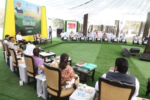 भोपाल मुख्यमंत्री शिवराज सिंह चौहान की अध्यक्षता में मंत्रि-परिषद की पचमढ़ी में आयोजित चिंतन बैठक के प्रथम-सत्र में मुख्यमंत्री तीर्थ …